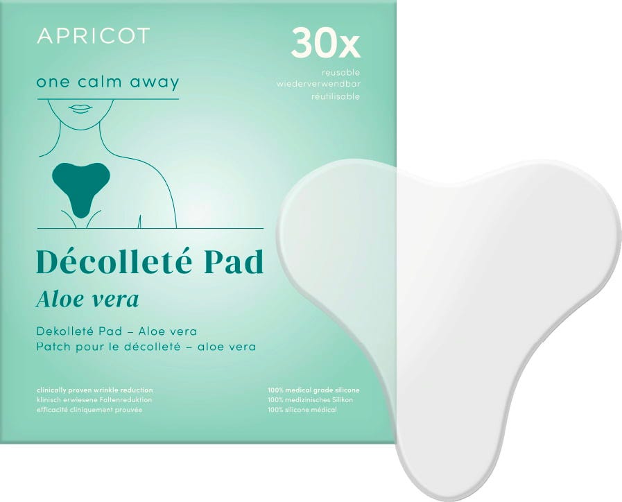 The Aloe Vera Décolleté Pad by APRICOT provides intensive care for the décolleté area. It is made from medical-grade silicone and enriched with high-quality organic aloe vera, which helps to smooth over lines and wrinkles. The pad can be reused up to 30 times. The pad is also ideal for use after sunbathing.