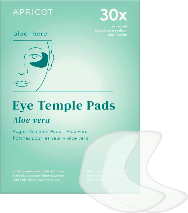 The Aloe Vera Eye Temple Pads by APRICOT are especially suitable for dry and sensitive skin around the eyes. High-quality organic aloe vera intensively nourishes the skin and provides important moisture. The pads are made of medical-grade silicone and can be reused up to 30 times.
