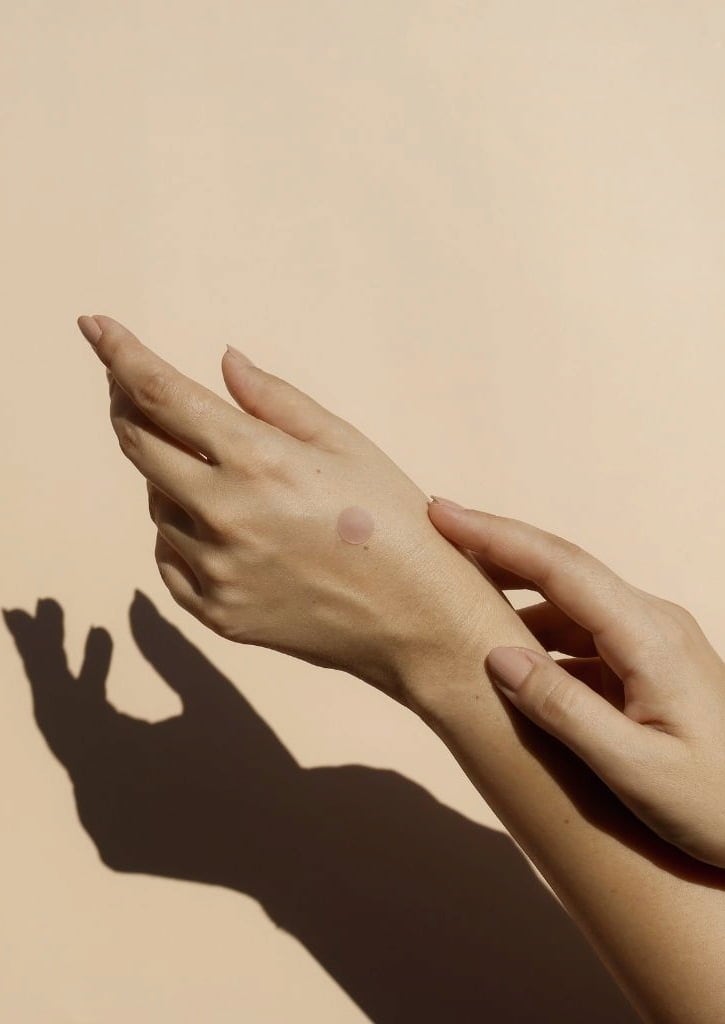 - Apply sun cream as usual and wait a few minutes. Once the sticker turns transparent, you will be optimally protected.