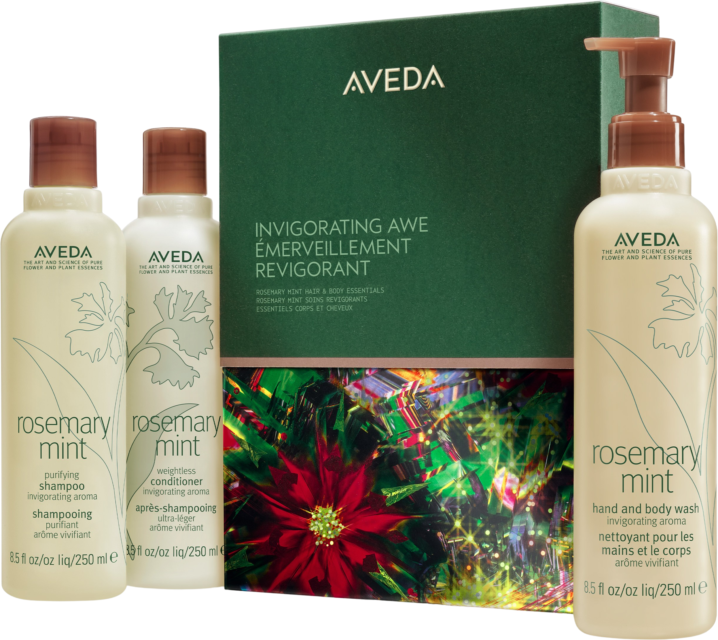 The limited-edition Invigorating Awe Set by Aveda revitalises skin and hair with the inspiring strength of rosemary and mint. The refreshing, coordinated products gently cleanse, intensively condition and provide a revitalising feeling of freshness and lightness.