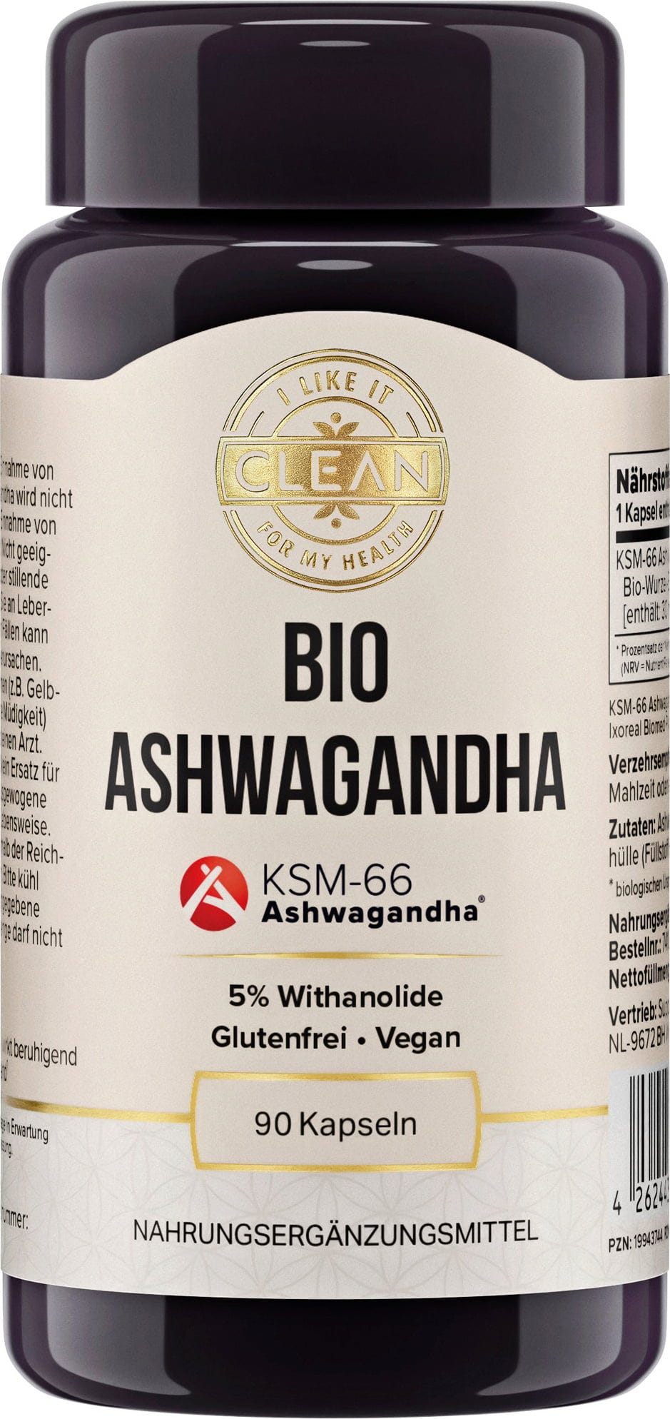 Discover premium Organic Ashwagandha Root Extract by i like it clean from certified organic farming. The branded raw material KSM-66® delivers the full spectrum of the ashwagandha root with verified purity - standardised to a 5% withanolide content. Non-GMO, gluten-free and encapsulated in a plant-based capsule shell, this product is perfect for a mindful diet.