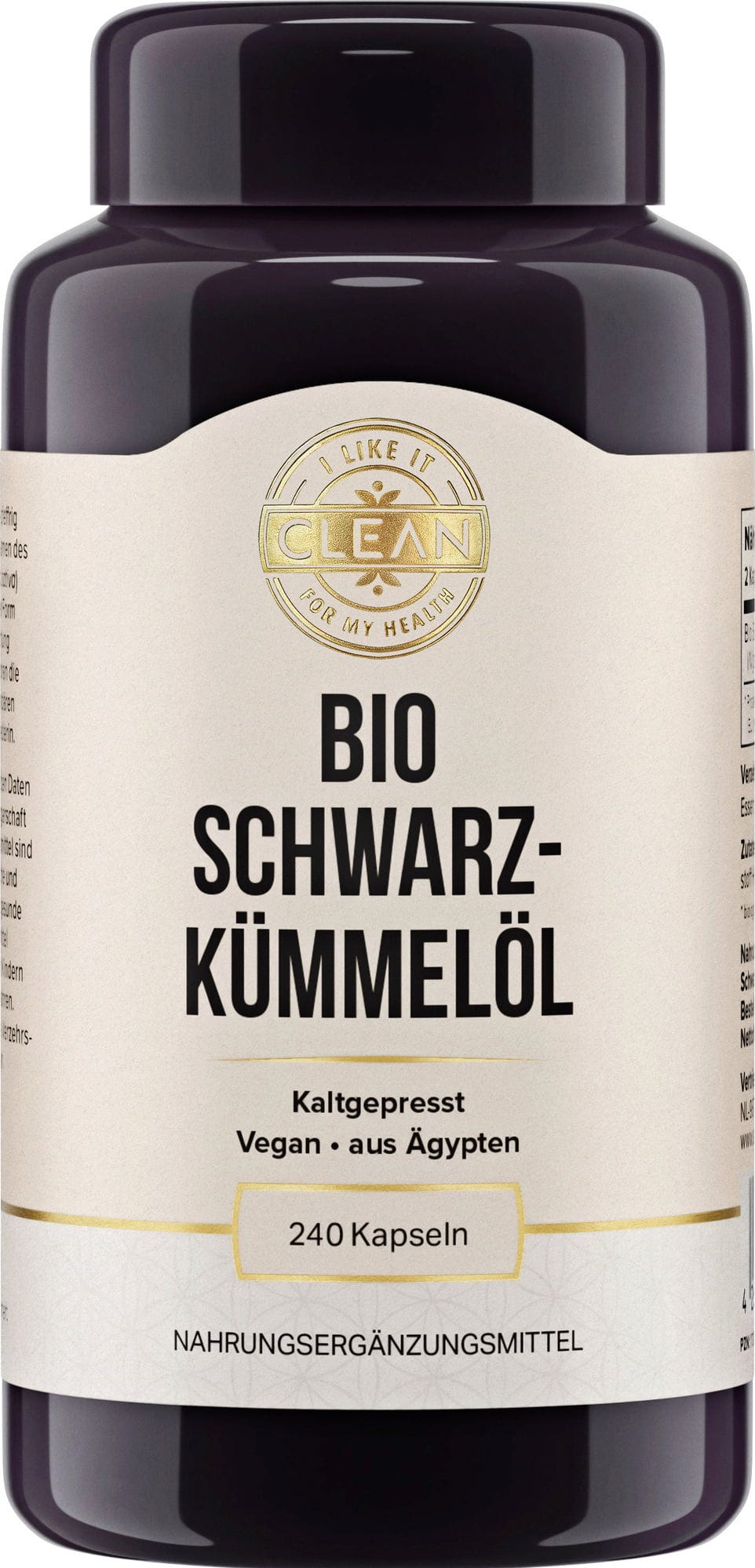 The vegan Organic Black Cumin Oil capsules by i like it clean contain highly pure, cold-pressed black cumin oil from controlled organic agriculture.