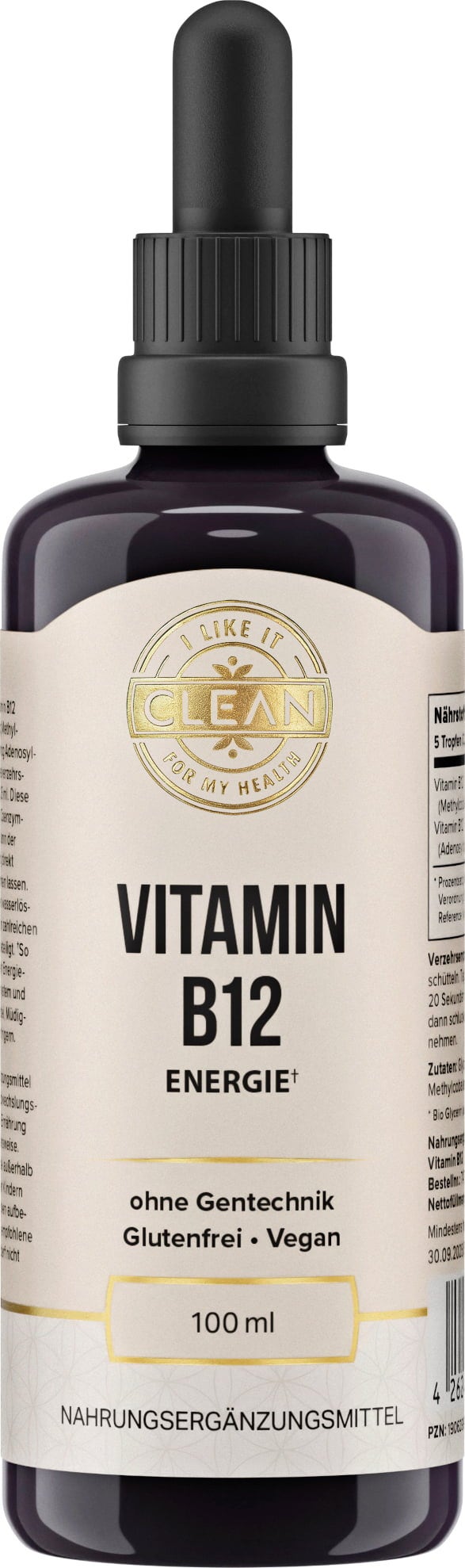 The Vitamin B12 drops by i like it clean contain methylcobalamin and adenosylcobalamin. Both forms of vitamin B12 are active and can be absorbed directly by the body. The alcohol-free drops are free from unnecessary additives and based on organic glycerine obtained from linseed and purified water.