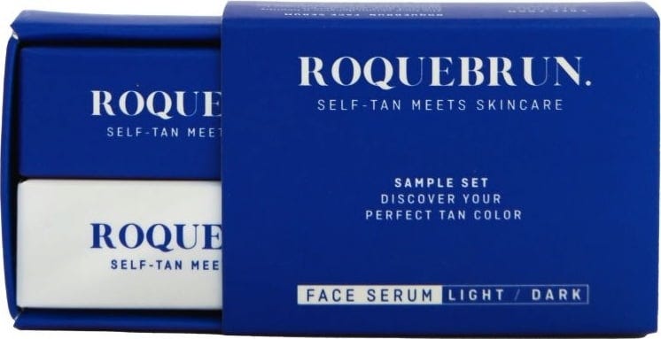 The Sample Set by ROQUEBRUN includes two self-tanning serums that give the skin a naturally bronzed look while delivering intensive hydration. They can be applied directly to cleansed skin or mixed with your daily skincare products. Premium ingredients such as plant-based retinol, hyaluronic acid, collagen, and aloe vera help smooth, firm, and soothe the skin. Suitable for all skin types, these self-tanning serums can be used morning and evening, creating a natural-looking tan without an orange hue. The lightweight, non-greasy textures absorb quickly, are fragrance-free, and develop visible results within 4 to 8 hours that last for 3 to 4 days. Enjoy a sun-kissed look while optimising your regular skincare routine.