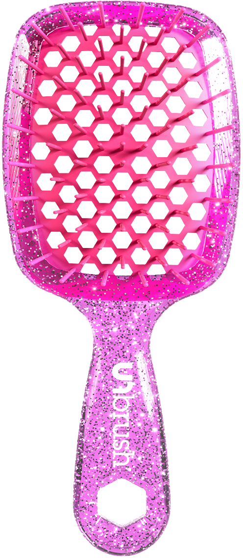 Say goodbye to bad hair days and painful tugging. The Mini Detangling Hair Brush by UNbrush is the new must-have for your mane. Whether you've just got out of the shower or want to freshen up dry hair, this brush glides gently through every knot without having to shed any tears. This is thanks to an ingenious mix of 105 Soft-Flex and UltraFlex bristles in two different lengths, which thoroughly detangle even the most unruly hair and thus effectively reduce hair breakage. Thanks to the lightweight material and ergonomic handle, the brush rests perfectly in the hand and makes combing more effortless than ever before. The perforated body of the brush, in combination with the heat-resistant bristles, also reduces blow-drying time by up to 48%.